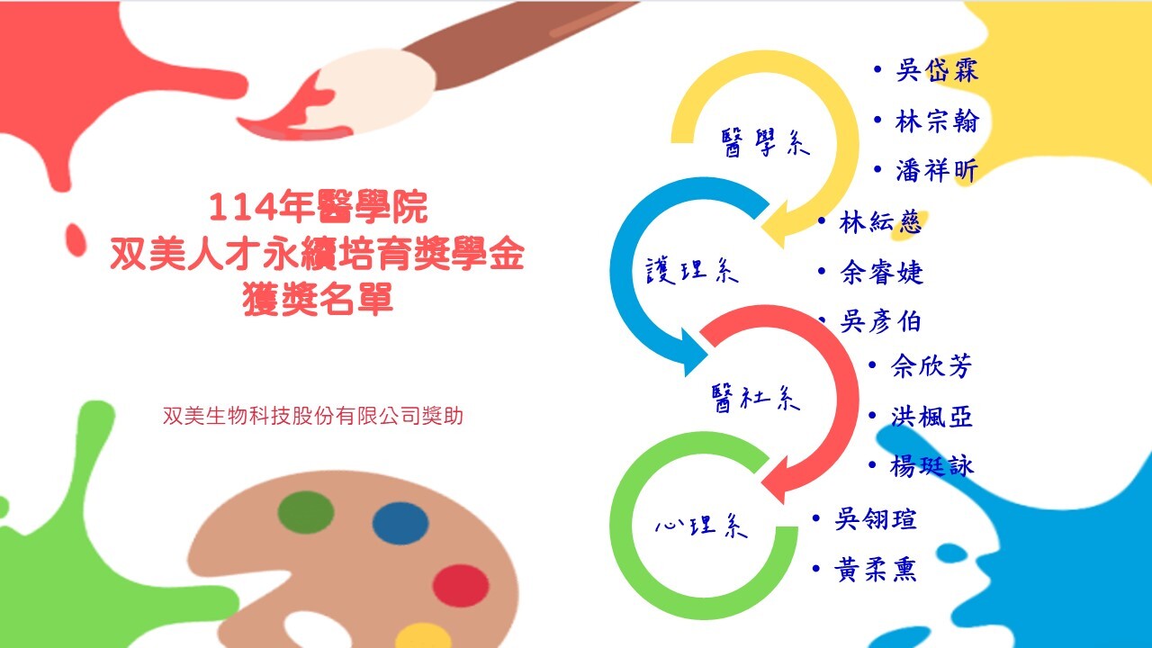 114年【双美人才培育永續獎學金】頒獎典禮訂於114年10月30日週四辦理